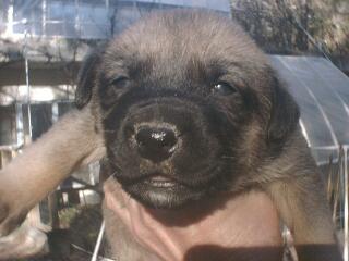 I'm still unsure of paternity, his features are consistant with GSD at this age but I've never had this coloration. One must be cautious of the mouth at this time, proximity to ears, noses, exposed hide evokes a rapid lip-lock!