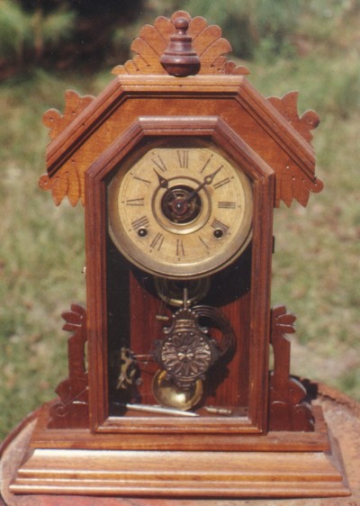 ![]() About 12-13 years ago, a collector/dealer offered me $500 and advice on how to clean and lubricate the mechanism. I didn't need the money at the time and I'd just as soon a professional fiddle with the innards of a working century-old clock. It has a beautiful hour chime and a raucous alarm bell.
