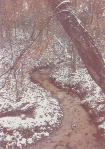 ![]() Here's a photo of the East creek after one of our rare snowfalls (Dec, 1989):